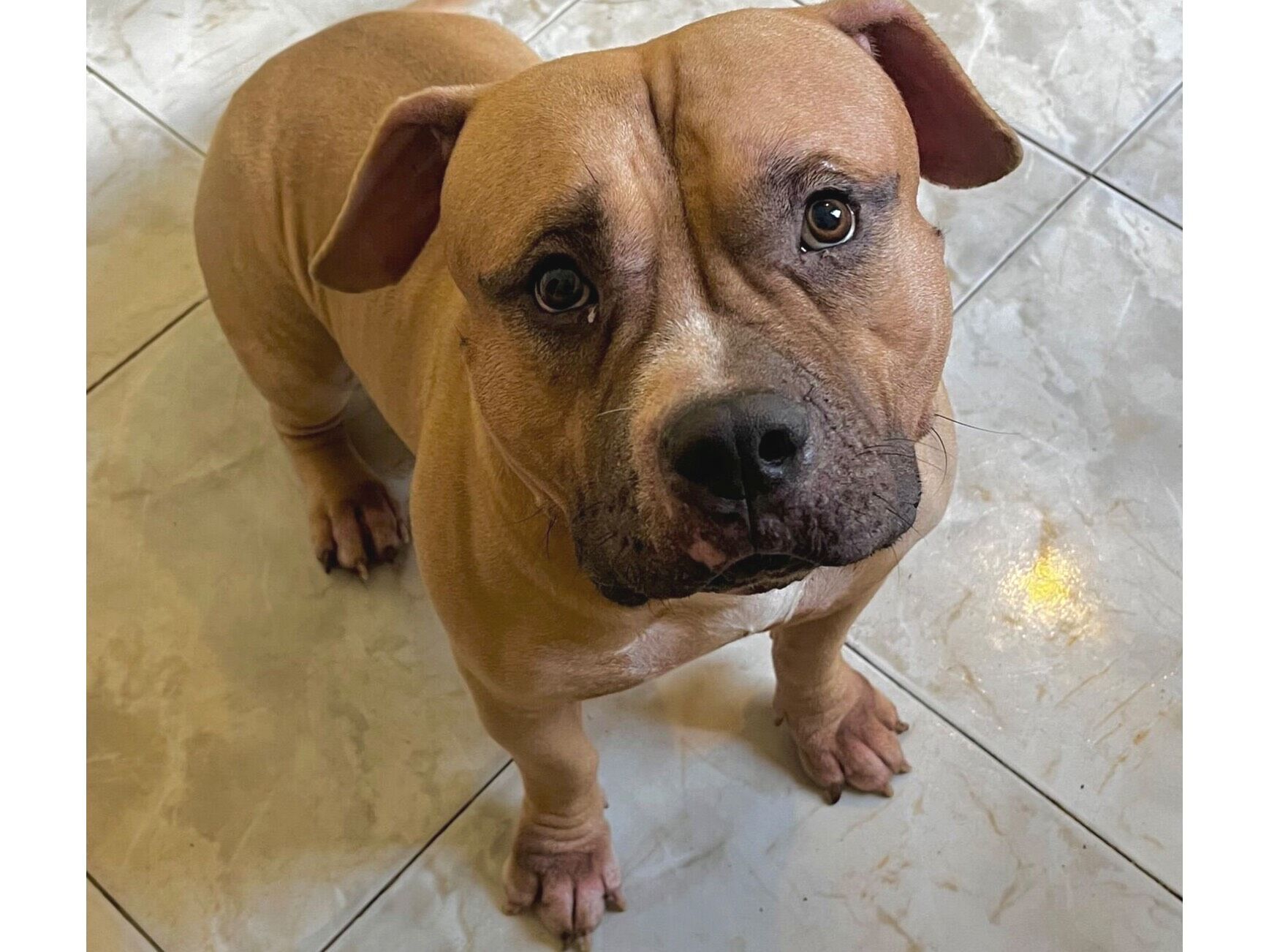 Cachorro médio, 1 ano, Pit-Bull, cor Caramela.