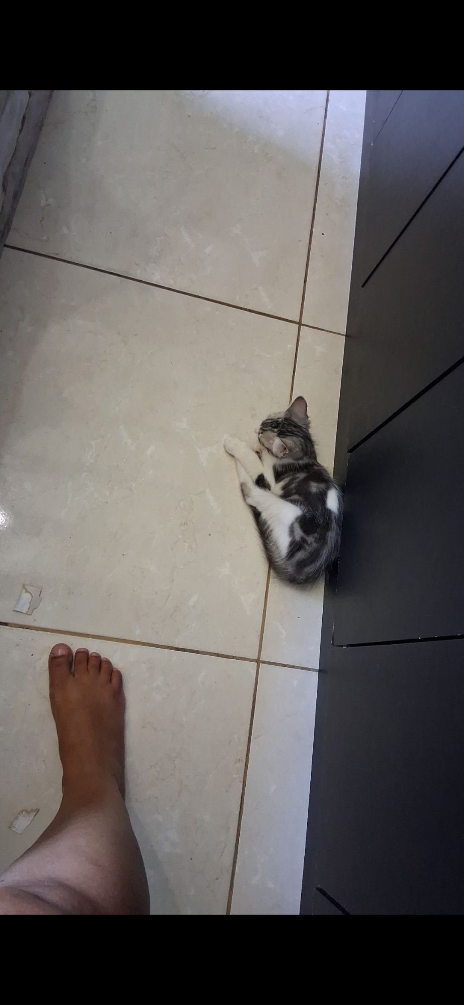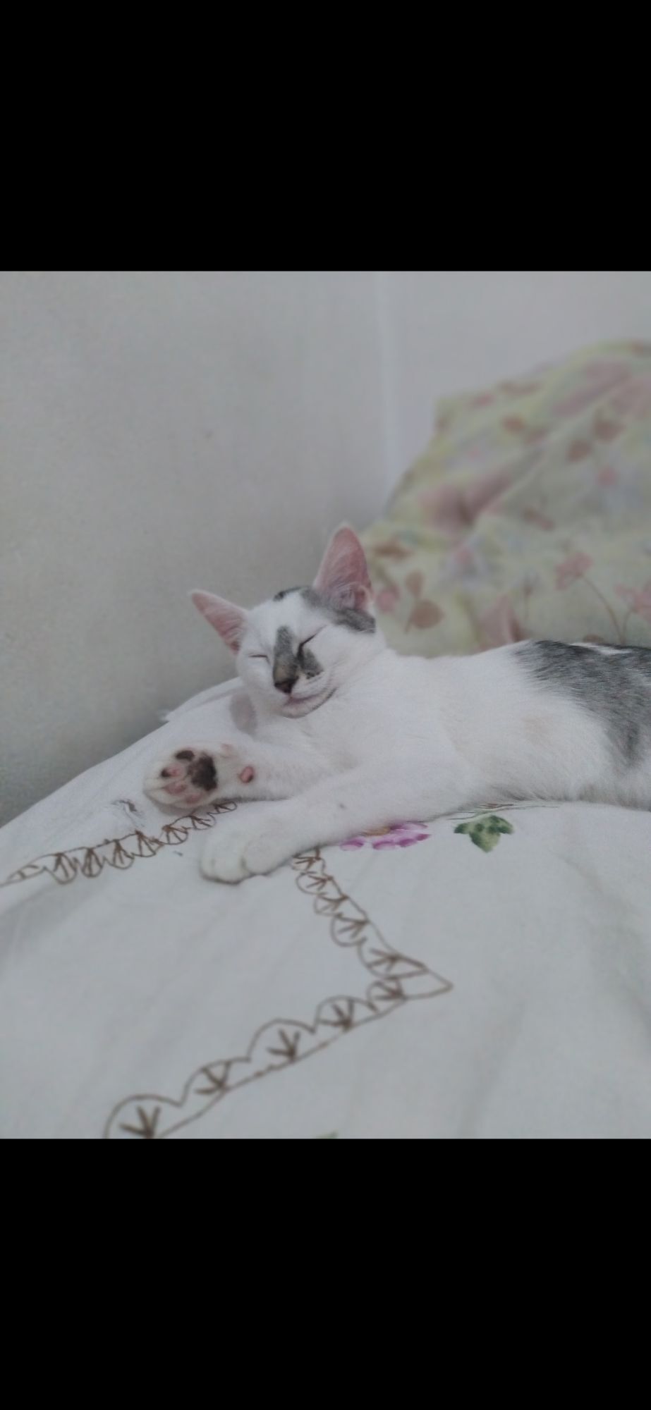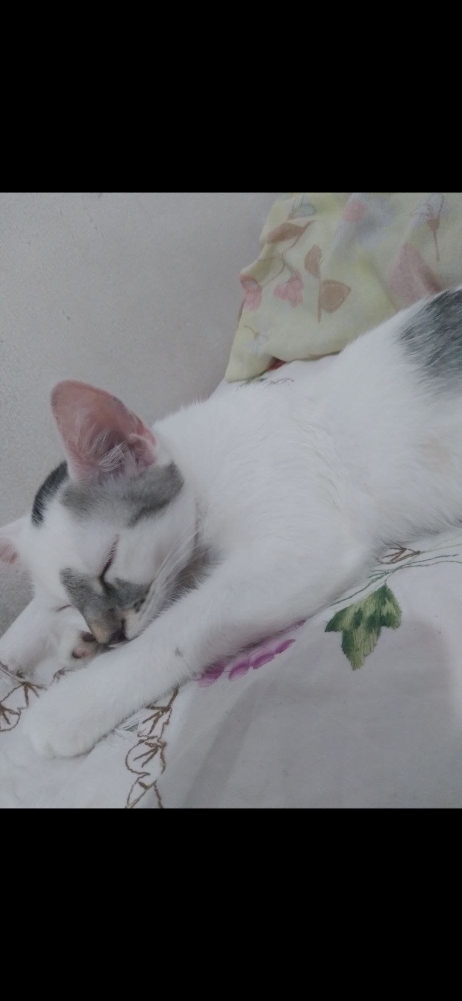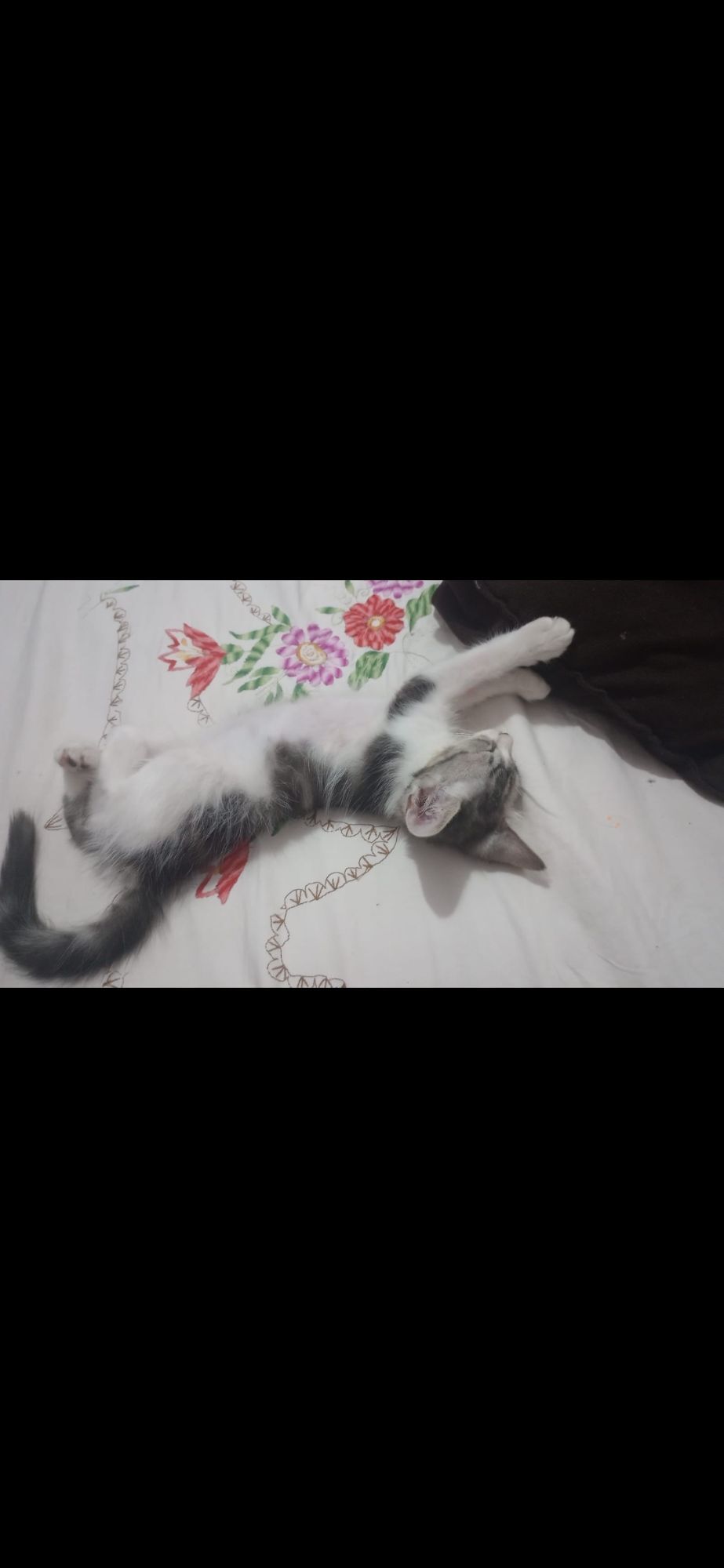 Gata média, 7 a 11 meses, SRD-ViraLata, cor Branca/Preta.